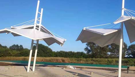 膜結(jié)構(gòu)景觀的施工組織設(shè)計應(yīng)包含以下需要解決的問題,明確成品膜在安裝現(xiàn)場的展開方向(相應(yīng)地,膜在工廠加工后的折疊包裝方與此相對應(yīng)),吊裝(或提升)方法;安裝所需的機械設(shè)備...