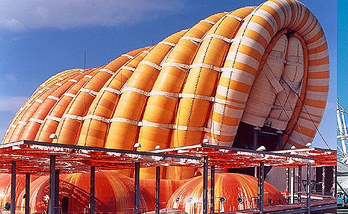 充氣結(jié)構(gòu),又名"充氣膜結(jié)構(gòu)",是指在以高分子材料制成的薄膜制品中充入空氣后而形成房屋的結(jié)構(gòu)。充氣式 結(jié)構(gòu)又可分為氣承式膜結(jié)構(gòu)(Air-supported Membrane Structure)和氣脹式膜結(jié)構(gòu)(或叫氣肋式膜結(jié)構(gòu))(Inflated Membrane Structure)。最典型的充氣膜結(jié)構(gòu)建筑是水立方,水立方的內(nèi)外立面充氣膜結(jié)構(gòu)共由3065個(gè)氣枕組成,最大的達(dá)到70平方米,覆蓋面積達(dá)到10萬(wàn)平方米,展開(kāi)面積達(dá)到26萬(wàn)平方米,是世界上規(guī)模最大的充氣膜結(jié)構(gòu)工程,也是惟一一個(gè)完全由膜結(jié)構(gòu)來(lái)進(jìn)行全封閉的大型公共建筑。