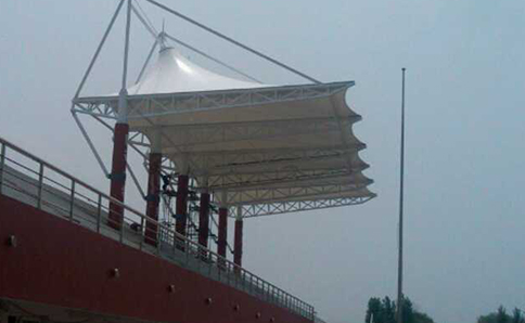 其膜一般采用PTFE或pvc膜材來做為膜結(jié)構(gòu)罩棚建筑的膜材。其膜材主要特點為具有良好的環(huán)保性、透光性、自清潔性,膜材表面采用PVDF(聚偏二氟乙烯)涂層、或二氧化鈦涂層,具有較好的隔熱效果,對太陽熱能可反射掉70%,膜材本身吸收了17%,傳熱13%,而透光率卻在20%以上,經(jīng)過10年的太陽光直接照射,其輝度仍能保留70%。大大正加了膜結(jié)構(gòu)罩棚的使用壽命。