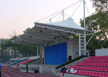 膜結(jié)構(gòu)主席臺改善了早期鋼筋混凝土結(jié)構(gòu)給人帶來的單一笨重的感覺,配合著鋁塑板造型的多樣化也慢慢映入人們眼簾