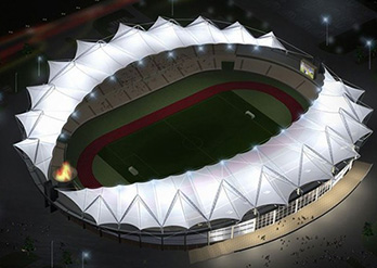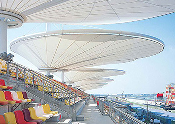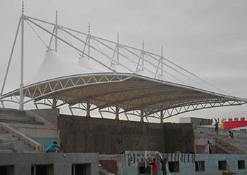 膜結(jié)構(gòu)主席臺改善了早期鋼筋混凝土結(jié)構(gòu)給人帶來的單一笨重的感覺,配合著鋁塑板造型的多樣化也慢慢映入人們眼簾