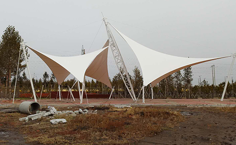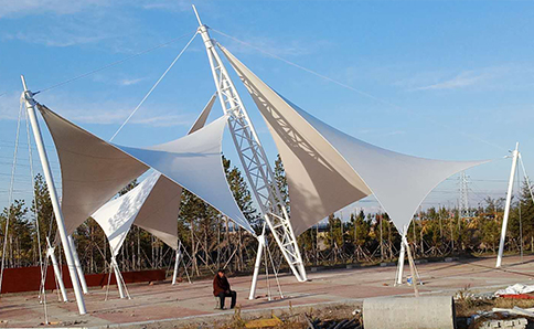 張拉膜結(jié)構(gòu)特別適合用來建造城市標(biāo)志性建筑的屋頂,如體育與娛樂性場(chǎng)館,需有廣告效應(yīng)的商場(chǎng)、餐廳等。城市的交通樞紐是城市命脈的關(guān)鍵性建筑,使用功能要求建筑物各組成單元的標(biāo)志明確。這類建筑越來越多采用張拉膜結(jié)構(gòu)。并且張拉建筑膜材料的使用壽命為 25 年以上。